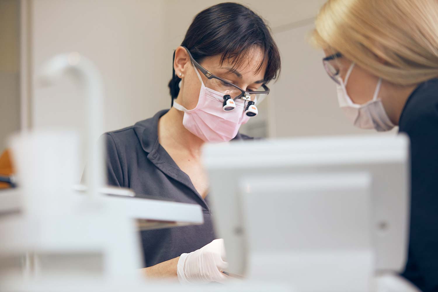 Lupenbrillen bieten dem Zahnarzt und auch dem Patienten entscheidende Vorteile und sind eine unverzichtbare Hilfe bei der täglichen Arbeit. Viele Handgriffe in der Zahnmedizin erfordern nicht nur einen geschulten, sondern auch einen extrem scharfen Blick. Aus diesem Grund wird in unserer Praxis für exakte Diagnosen, wie für besonders feine und detailreiche Arbeiten eine Lupenbrille verwendet.