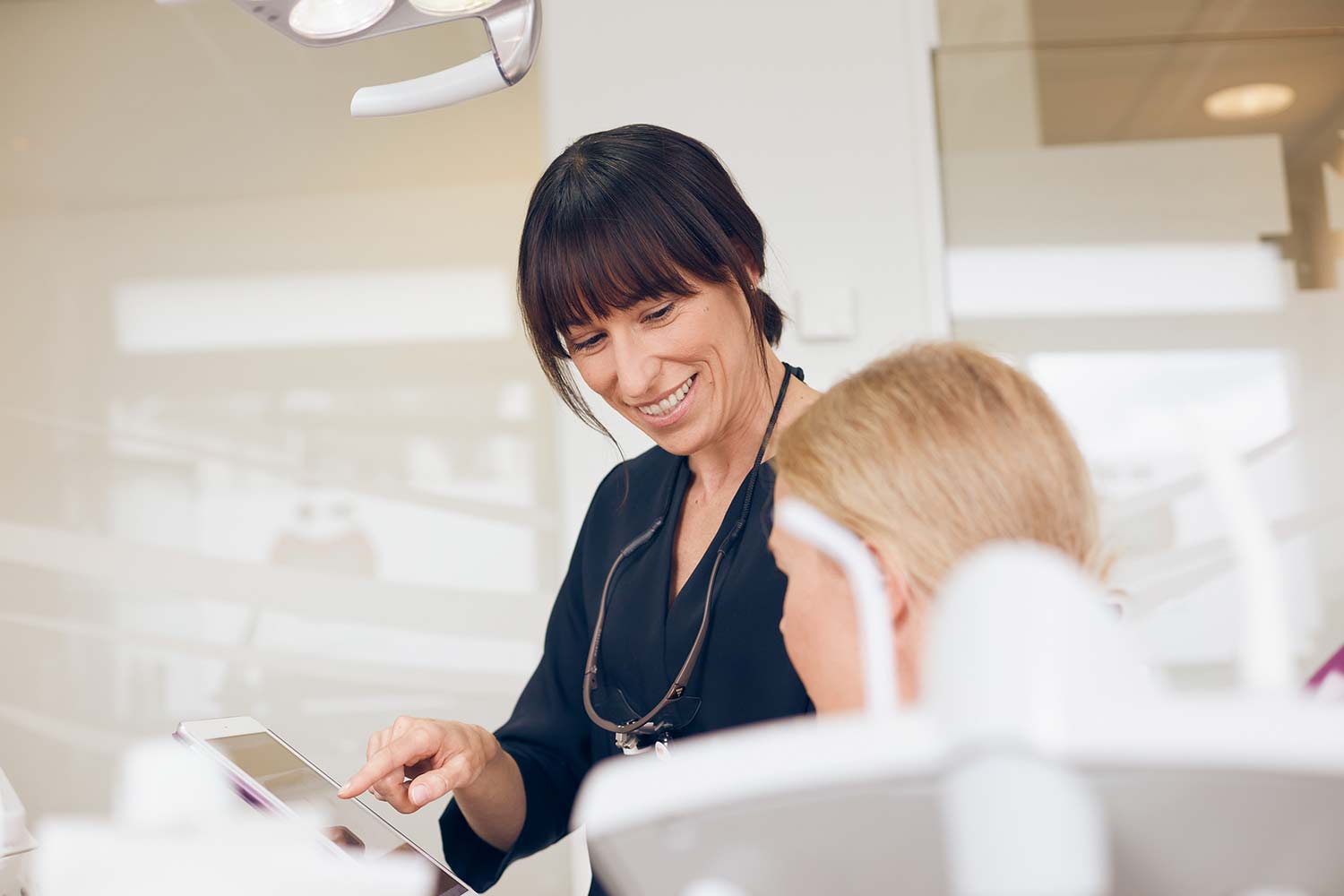 Die Behandlungsstühle der Praxis sind mit einer intraoralen Kamera ausgestattet. Diese Technik gewährt dem Patienten einen optimalen Einblick direkt am Monitor und schafft beste Voraussetzungen für ein erfolgreiches Vorgespräch. Auch während der Behandlung können die Patienten live am Monitor dabei sein. Für den Behandler ein wertvolles diagnostisches Hilfsmittel - für den Patienten eine erstaunliche Entscheidungshilfe.
